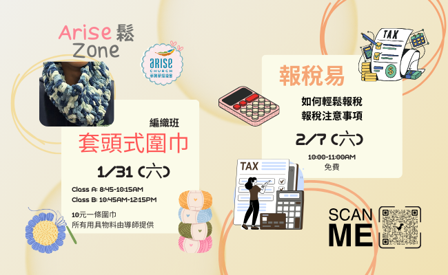 3.『Arise Zone 鬆』活動 : 以下兩個興趣班歡迎教會人士參加。 請在此報名。